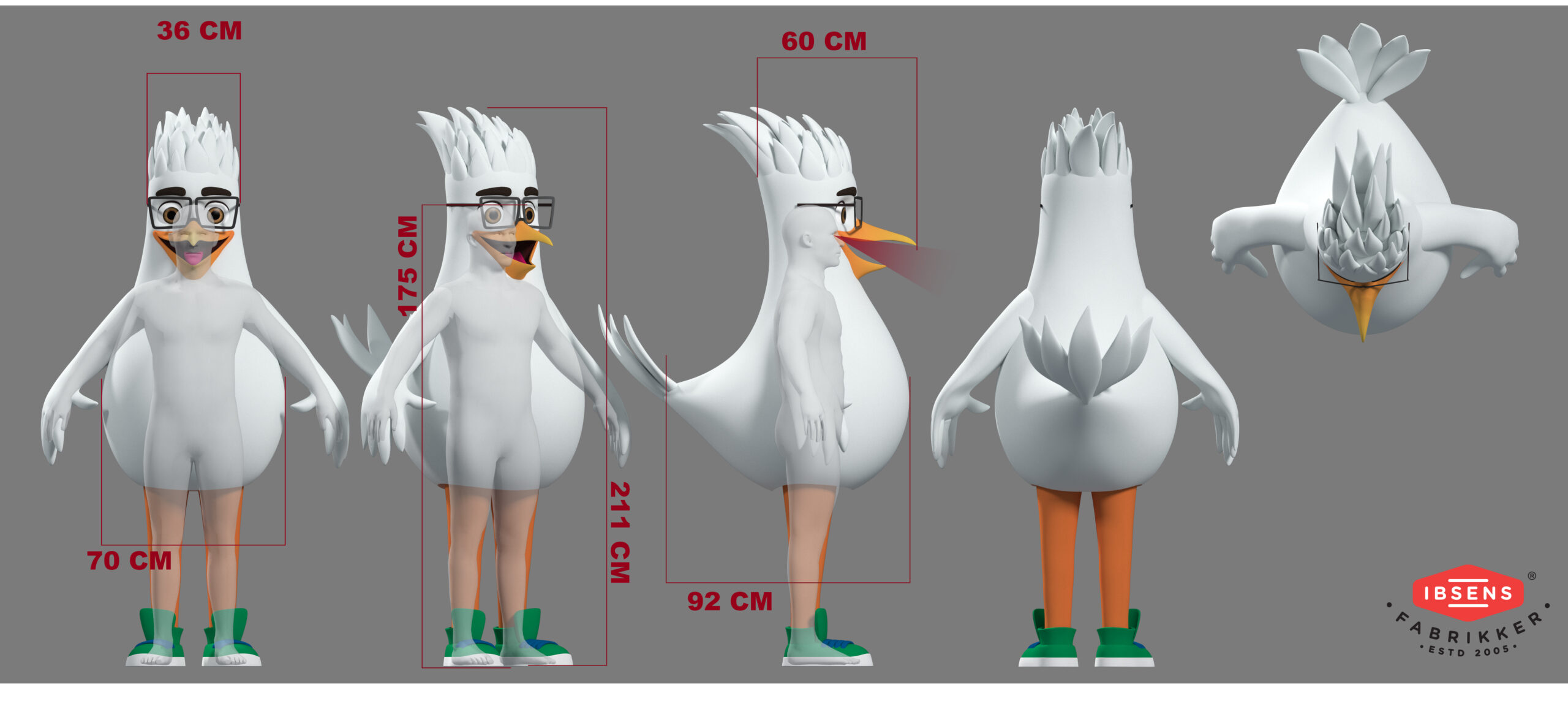 Ibsens Fabrikker A/S stod for at omsætte den digitale figur til en fysisk maskotdragt, der kunne fungere i en eventkontekst og skabe direkte kontakt med målgruppen.