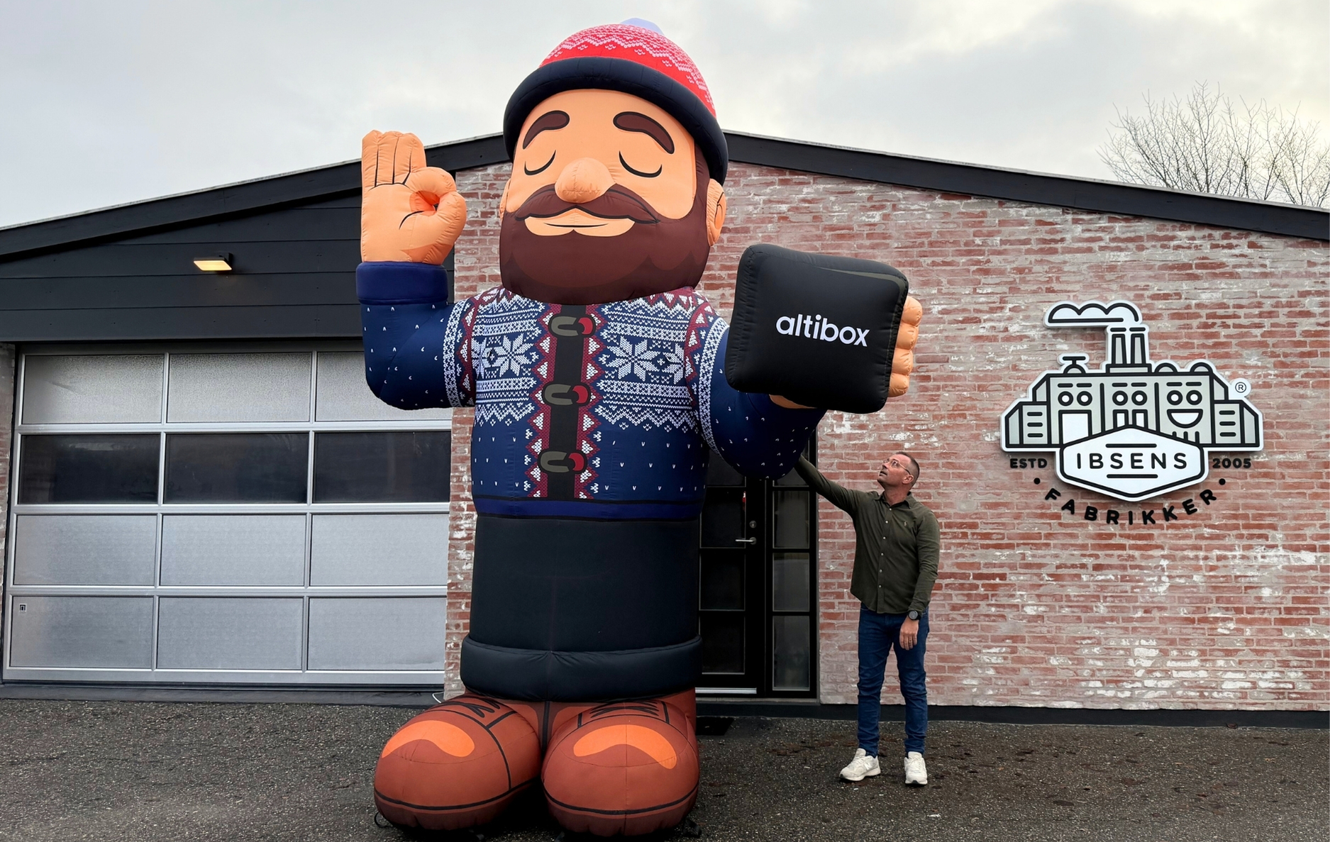 Reklamemand som oppustelig figur Altibox kom med et klart ønske. Deres nordmand fra TV-reklamer skulle blive til en kæmpe oppustelig figur.